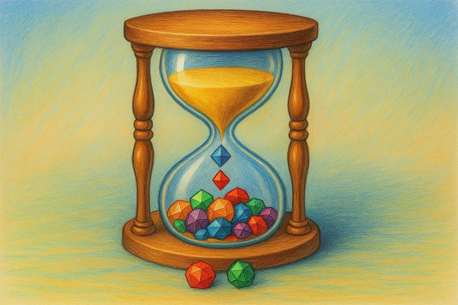 One concrete example of this is how I build images for these posts. When I first started, I was just providing a description of the image I wanted to Copilot, and taking what it gave me. But once I reached a topic that I didn't have a clear picture in my head for how I wanted to pictorially capture it, the exchange with AI became much more of a conversation. I couldn't picture the image I wanted for my Finite Time8 post. I gave Copilot a summary of the article and we started talking about what images could be used to convey that summary. Copilot came up with the hourglass, and then I came up with gems coming out on the bottom.