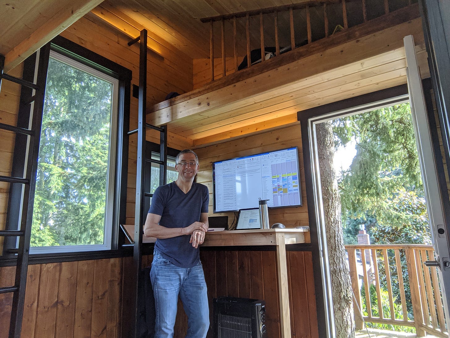 That afternoon, I was sitting at the kitchen table having lunch and reflecting on the challenge of me trying to work in this blended environment. I couldn't get into a work mindset. Decades of practice at making the home a "no work zone" made this a hard habit to break. It was at this moment that I looked out in our backyard, and up at our treehouse.