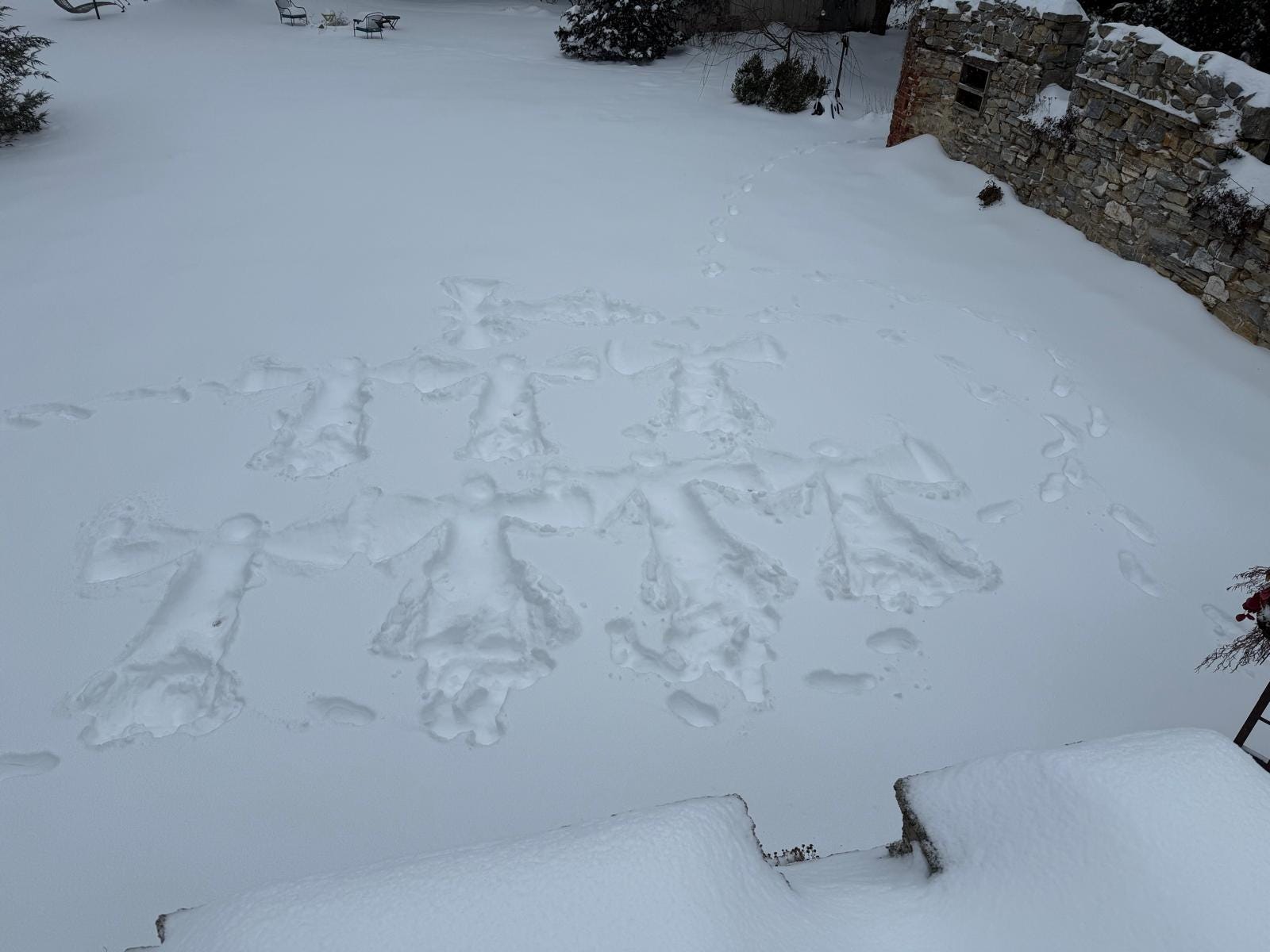 And apparently she enjoyed that more than she had expected, because the next photo was what she called a “snow angel pyramid”, with one angel for each of us. 🤣