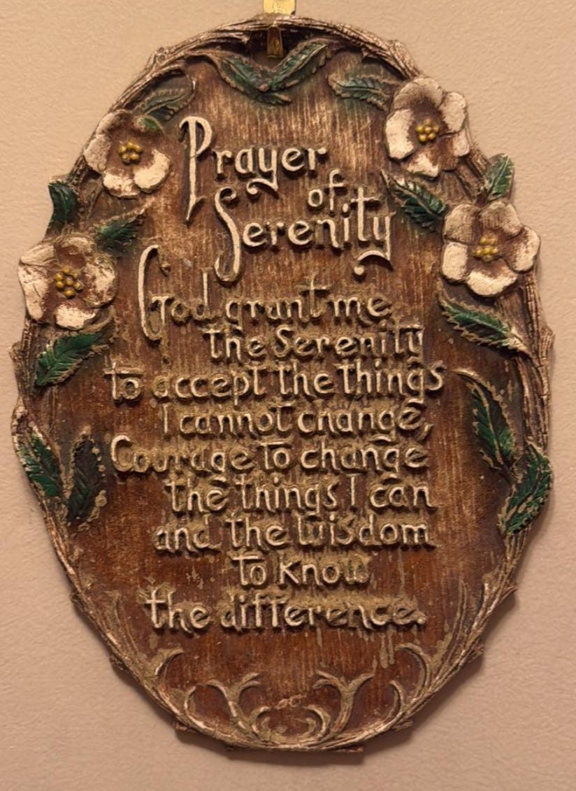 Of all the meaningful totems1 I’ve collected, the most significant ones are mental. A physical totem is there to trigger a memory. A mental totem is etched into your brain. Mental totems invade every aspect of your life, in the best kind of way. One of my best examples of a mental totem is my Mom’s Prayer of Serenity wall art.