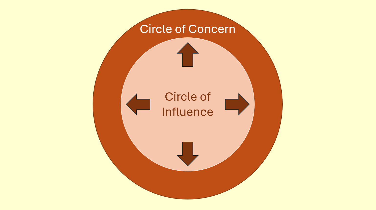 Your overall effectiveness as an individual comes down to how well you can recognize what things you can change and what things you can’t change, and then how well you can direct all of your energy to what you can change. This is Stephen Covey’s first habit in “The 7 Habits of Highly Effective People”2. Habit #1 is called “Be Proactive”, where Covey introduces the two circles: the Circle of Concern and the Circle of Influence.